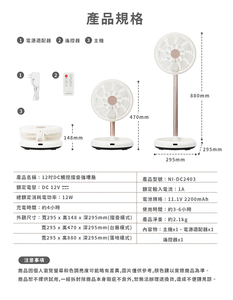 主機x1、遙控器x1、適配器x1、說明書x1、保固書x1